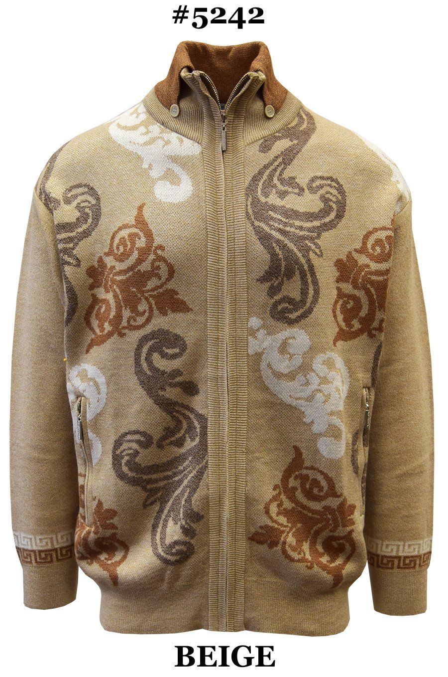 DOUBLE COLLAR W/ PAISLEY PRINT SWEATER